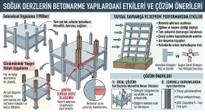 1980’li ve 1990’lı yıllarda yaygın olan uygulamada, bir katın kolon, kiriş ve döşemeleri genellikle tek seferde betonlanmakta idi. Sonraki yıllarda ise şantiye organizasyonu, hız ve kalıp ekonomisi gibi nedenlerle kolon ve döşeme betonlarının farklı zamanlarda dökülmesi yaygınlaşmıştır. Bu değişim, betonarme sistemin en kritik bölgelerinde soğuk derz oluşumunu beraberinde getirmiştir. Bu durum, tamamı deprem bölgesinde yer alan ülkemizde bina güvenliği için risk teşkil etmektedir. Hele bir de yapım aşamasında yapı güvenliğini tehdit eden diğer hatalar da göz önüne alındığında söz konusu risk faktörü tehlikeli boyutlara taşınmaktadır.